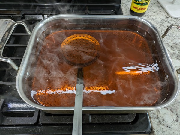 - When water is nearing a boil, add molasses and stir so it doesn’t stick and burn