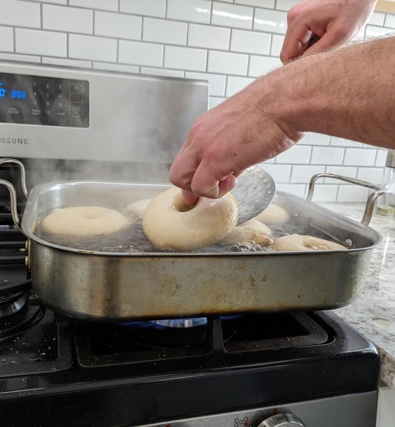 Tools - something wide with tall sides to boil water in, cover for pot, small strainer / slotted spoon for fishing out bagels
