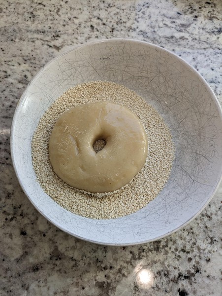 - Scaling down for KitchenAid mixer => If you have a KitchenAid, multiple each ingredient by 0.375, and make 12 ~100g bagels. Go easy on it