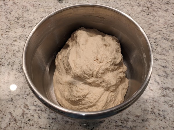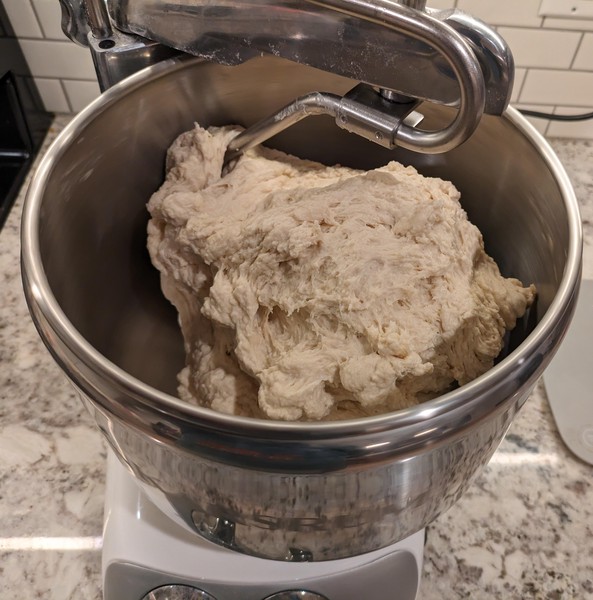 - Stop and cover mixer with large plastic bag, rest for ~10 minutes