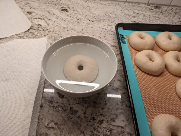 - When water is boiling, gently drop in 6 bagels. They should float like bumper boats