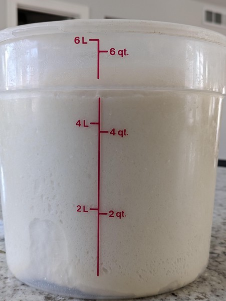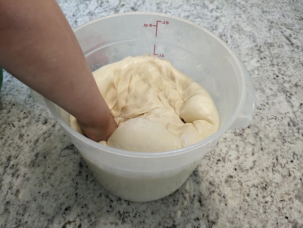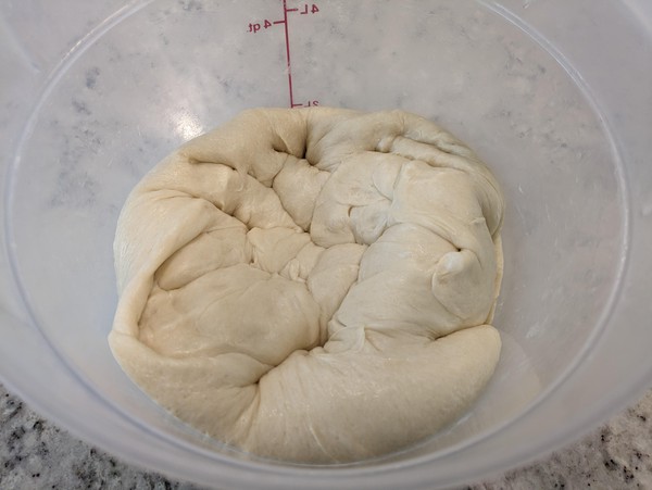 - Remove dough and manipulate with your hands into a tight ball. Put in greased bucket and cover. Let rest until at least doubled
