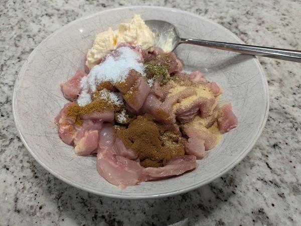 - Mayo Marinade => Yes, mayo. Yes, this will look gross. It sounds gross when you mix it too!