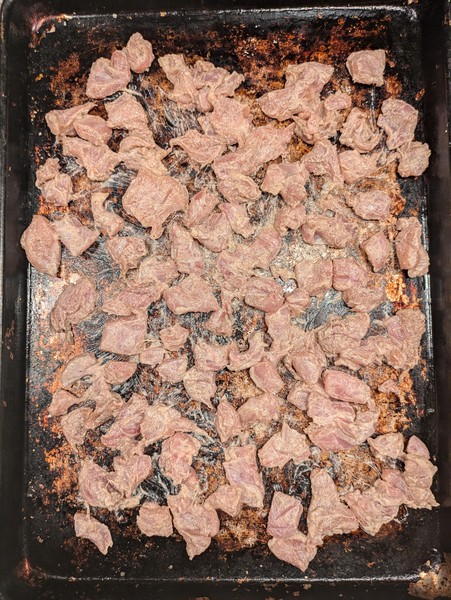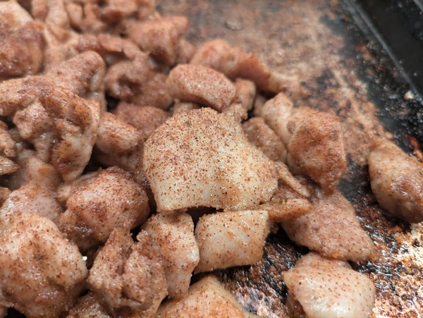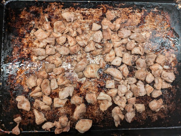 - Spread chicken on sheet pan, so that there is no overlap. Broil for 5 minutes