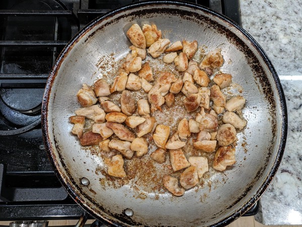 - Sticky Bits => Don’t scrape up the stuck-on, brown bits when stirring the chicken. After you’re done and the skillet is cooled down, let the skillet soak with soapy dishwater for a while. Lodge pan scrapers are the best tool for the job, for the rest