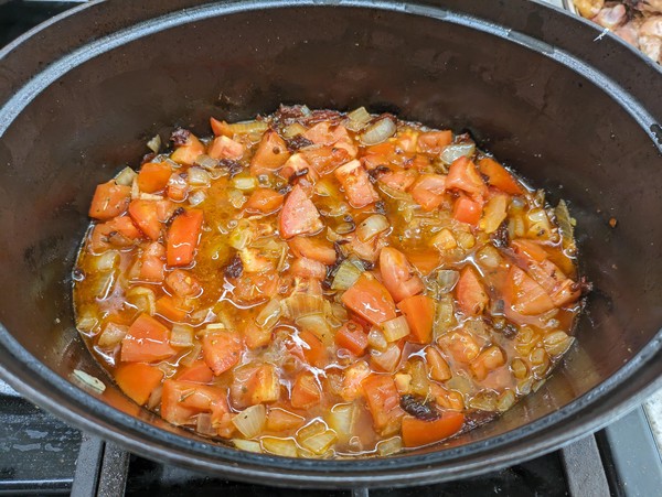 In a saucepan or Dutch Oven over medium heat, heat a couple tbsp of the chicken fat or vegetable oil until shimmering (couple min). Add the onion, garlic, cumin, oregano, and salt. Cook for a few minutes until onions are soft, stirring occasionally. Add Chipotle peppers, tomatoes, and 1/2 cup water. Lower heat, add cover, and cook for 10 minutes, checking and stirring it a couple times. Use an immersion blender (or transfer to blender) to turn into a sauce.