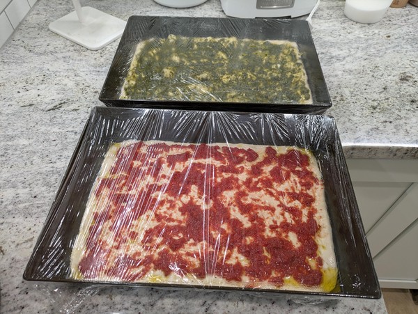 On day 1, you make the dough and pan it out. This takes about an hour, mostly hands-off while the dough rests.