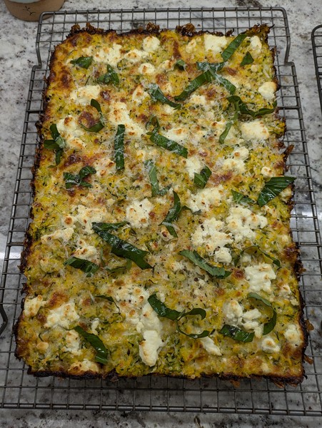 Remove pan from oven and separate edges from pan all the way around (offset spatulas work best). Use spatula to lift a corner and peek at the bottom. If it looks pale / yellow-golden instead of golden-brown, move to a warming rack placed in a half-sheet pan and bake for a few more minutes, covering the top with foil if needed. Peek after a few minutes and keep going until the bottom is golden-brown. Move to warning rack on counter, top with grated parm/pecorino and oregano, and let rest for 5 minutes.