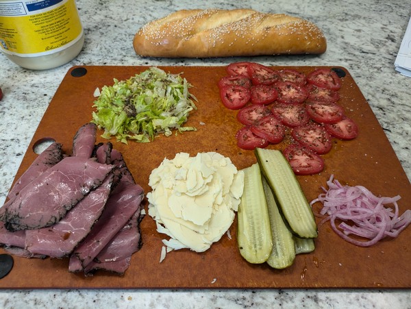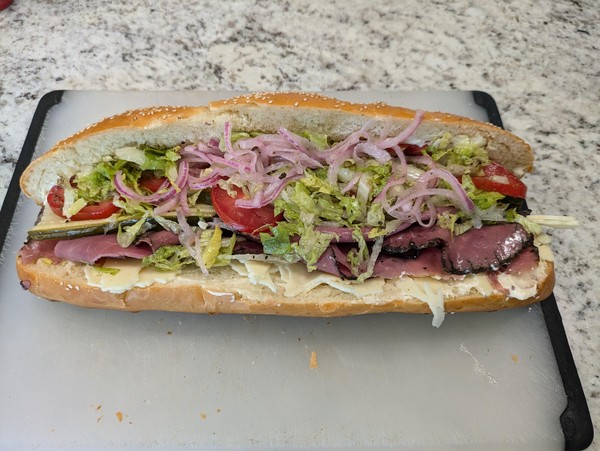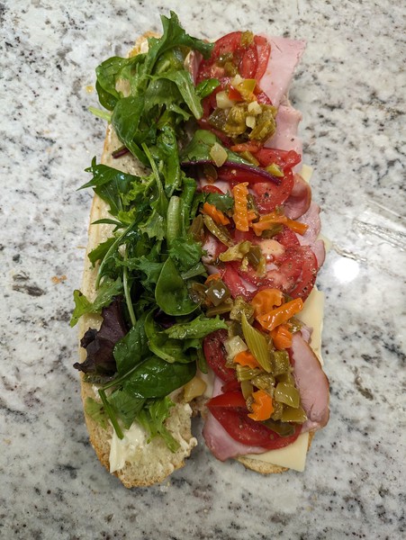 there’s lots to love here, and a million directions to take. Could be a hot sandwich with leftover meats from the grill, topped with cheese and pickles and finished under the broiler. Or the classic Italian sub with coldcuts, shredduce, tomatoes, finished with vingear and oil. Could use up that egg/chicken/tuna salad. Could load it up with Italian beef Chicago-style. And on and on and on