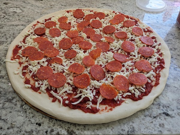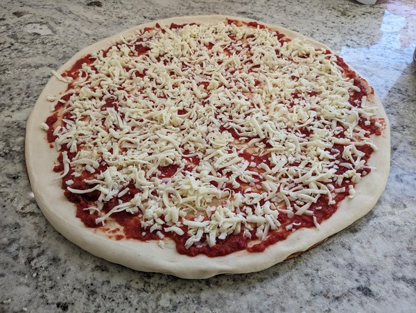 - Pizza Prep (-90 min) => set oven to max, with stones/steels in place. Remove dough containers from fridge. Shred cheese and prepare toppings. Get out peel, screens, and flour. Lightly grease pizza screens for insurance