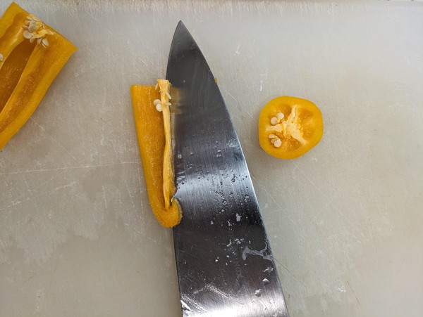 - Remove pith from sweet peppers and cut into 1/2 inch pieces