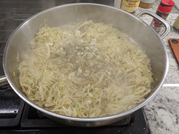 Finely slice cabbage, onion and garlic. Get all ingredients ready.