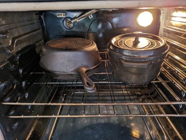 - Preheat oven to 500°F with 2 dutch ovens for at least 45 minutes