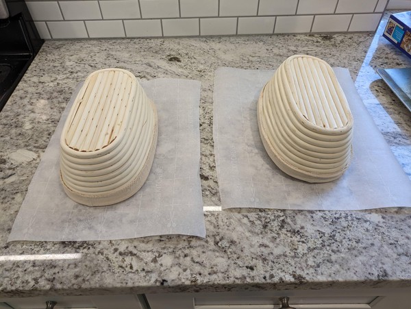 - Cover bannetons with parchment sheet, flip upside down, and remove banneton