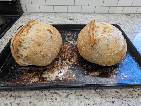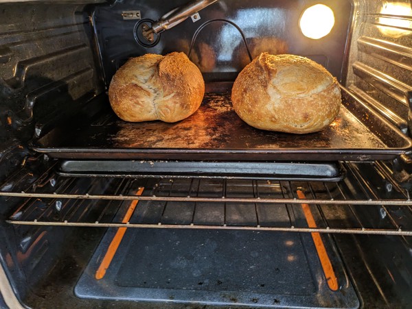 - Remove dutch ovens and transfer loaves to a sheet pan