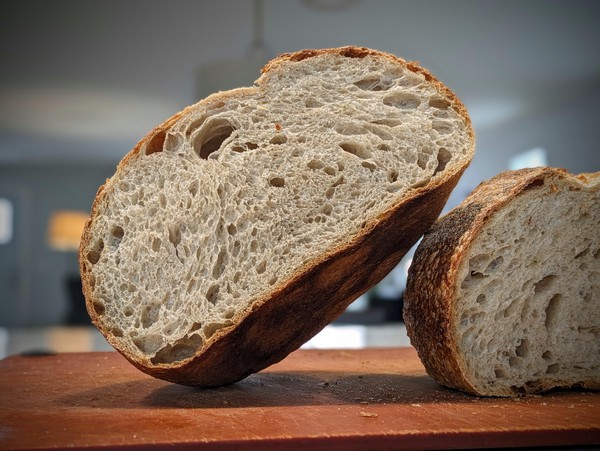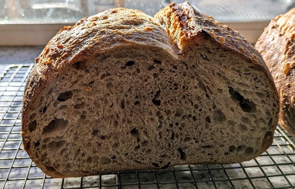 artisan sourdough bâtards with whole-wheat and rye flours in the mix