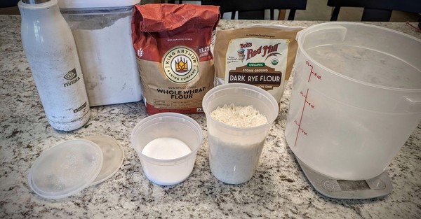 - Hydration Level => This is a 70% hydration dough, which is relatively low/dry. This makes the dough easier to handle and build strength. More water can be added, but try it this way first