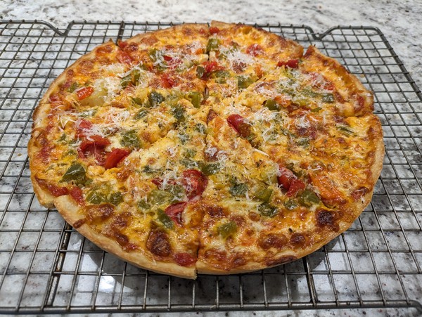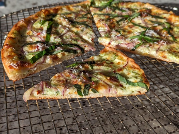 - Finish => move pizzas to cooling racks. Top with grated parm/pecorino and oregano. Slice and serve hot