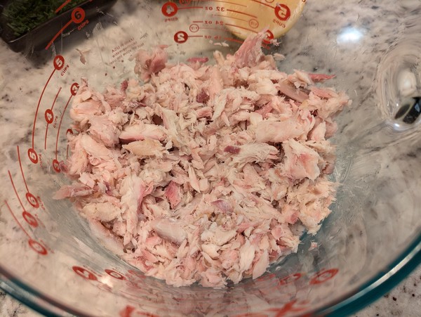 - Fish => remove skin gently. To debone1, you can try with a fork, where you gently pull from the middle outwards, along the spine. Or you can give up and use your hands. Move the pieces from the cutting board to the bowl, looking for pin bones as you go. There’s a mix of large and small bones; do a final pass for them in the bowl.